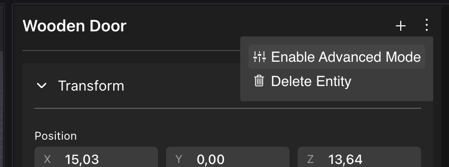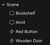 • Doors: Doors are opened or closed when clicked. You can change this behavior so they’re opened by buttons, trigger areas, etc.