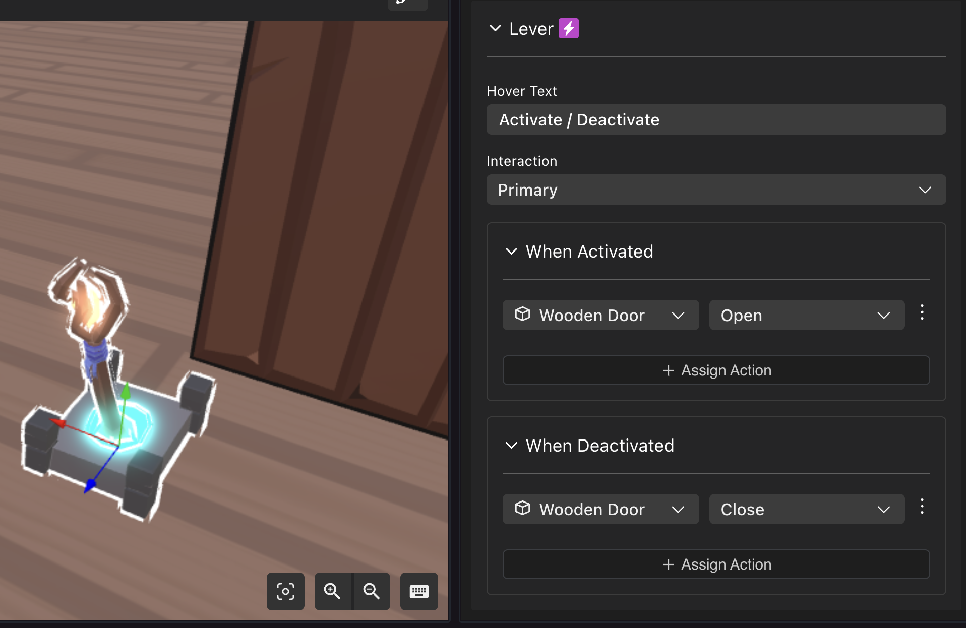 You can also chain actions. For example, if the door that is opened by the lever includes an action in its own When Opened field, this action will also be triggered.