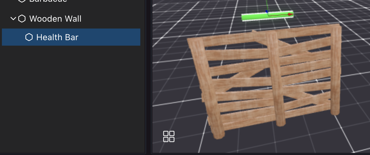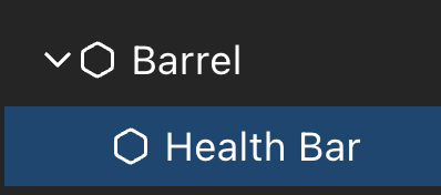 Health bars can be configured to affect anything! For example, add a health bar nested under the Wooden Door smart item. This bar can have its health lowered by the player using the Sword smart item, but also from an explosion from the Barrel or the attack of the Robot Enemy. For this to work, configure the health bar so that it performs an action on its parent item when its value is 0.