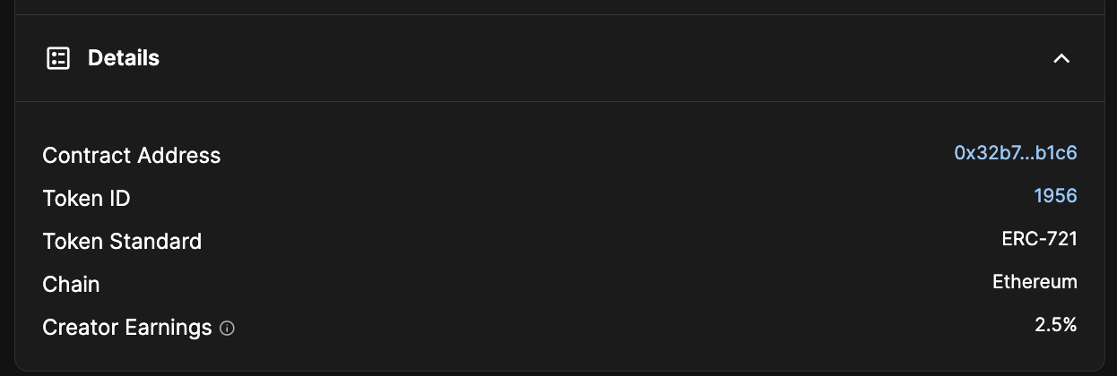 📔 Note: You can also obtain this information from the opensea URL. For example, if the NFT’s URL is the following: